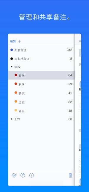 欢迎使用Notability:功能强大但简单易用的笔记与PDF批注应用。 在iPad、iPhone、Mac平台上分别入选Apple编辑的精品推荐!iPad App Store上的最畅销付费应用,经常名列#1。 学生、教师和职场专业人士每天使用Notability充实自己的生活。本应用针对不同平台进行特别设计,为学校、家居、职场提供最佳的笔记体验。 精简工作流程 • 在课堂、办公室和家中实现全面无纸化。 • 在Notability中制作、签署和共享文档。 • 凭借多任务功能,利用拖放操作将其他应用中的文件、文本、照片、GIF动图、网络页面等内容移至Notability内。 • 使用…
