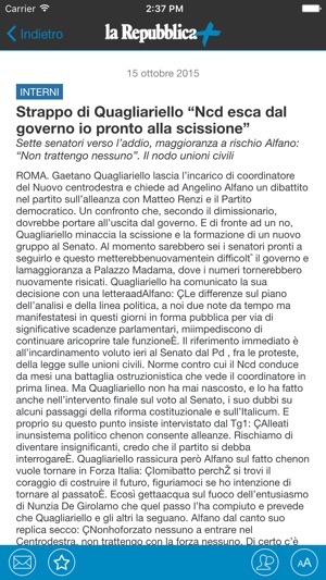 Scarica la app "Repubblica +", sfoglia il quotidiano e scopri una lettura semplice e piacevole. OGNI MATTINA, SUBITO LA TUA COPIA: già al tuo risveglio, il quotidiano direttamente sul tuo iPhone o iPod Touch; IL GIORNALE SEMPRE CON TE: il piacere di avere la Repubblica da sfogliare ovunque, anche…