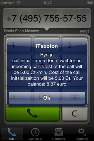 With iTaxofon you can make cheap calls with VoIP-providers (SIPNET, VoipBuster, Rynga, NoNoh, Internetcalls, DialNow, VoipCheap, VoipDiscount, Low-rate Voip, 12Voip, ActionVoip, BudgetSip, FreeCall, InterVoip, JustVoip, NetAppel, poivY, SIP Discount, SmartVoip, SMS Discount, SMSLISTO, VoipBuster Pro, VoipStunt, VoipWise, VoipZoom, FreeVoipDeal, VoipBlast, VoipGain, CheapVoip available now). Just install iTaxofon, register new account (if you not have it yet), set the program settings and make cheap calls over the Internet (VoIP). iTaxofon application is aimed to easily make callback calls, which is known to be a bit tricky to do other ways. It is common practice to place such a call to visit your operator site and arrange the call by submitting second part number. You also should keep in mind your account balance and know the price you'll pay for each minute of such a callback call. Tricky, really. iTaxofon can work on Wi-Fi, EDGE, 3G, GPRS networks available on iPhone. Available history of calls and integration with iPhone Contact list. iTaxofon use phone-to-phone service of the VoIP-providers. iTaxofon's advantage is that you do not need to use various VoIP-softphones, sometimes providing unacceptable quality of conversation, depending on Internet quality connection and also use of much mobile Internet traffic. With phone-to-phone (callback) service, VoIP-provider's softswitch will call to your phone itself (it will be a regular incoming call to your mobile phone or any other phone) and will connect with called party at cheap rates of phone-to-phone service of VoIP-provider. With iTaxofon you can make calls on the street, in the car, outside the city and elsewhere and not worry about the quality of connection to the Internet. Additional VoIP-providers will be available with iTaxofon update.