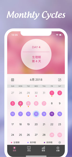 只需一款App就能精准追踪、监控您的生理期,并且提供暖男般的贴心提醒。经过精心设计的Monthly Cycles结合了华丽界面和优雅体验,生理期中的每个阶段都一目了然。另外还有惊喜小功能,为您的“造人计划”提供良辰吉日,生男生女由你决定。Monthly Cycles让您对生活有了更自由的选择:要一个小宝贝或是继续二人世界,都在您的掌握。 精美界面 - 日历界面让周期一目了然 - 特别的日子用不同颜色的符号标注 - 每日记录不同的症状、多少等等 掌控生活 - 经期预测同时兼顾个人状态的波动 - 详尽的图表展示您的变化 - 醒目标注出易孕期,帮助您进行生育管理 - 生育模式中提供日期推算 个…