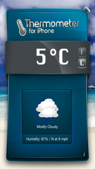 Thermometer is the market leader, it's undoubtedly one of the most useful utility app. Anywhere around the world, you get the temperature in one second without having to setup anything. You also have informations on wind and humidity. To suit all moods and tastes, the application offers six different themes. Thermometer works worldwide. This is undoubtedly one of the most useful applications. The application is very simple to use, run it, your location is automatically found by using the GPS of the iPhone and the temperature appears in a second with the sky condition, humidity and wind force . Temperature can be displayed in Celsius or Fahrenheit.