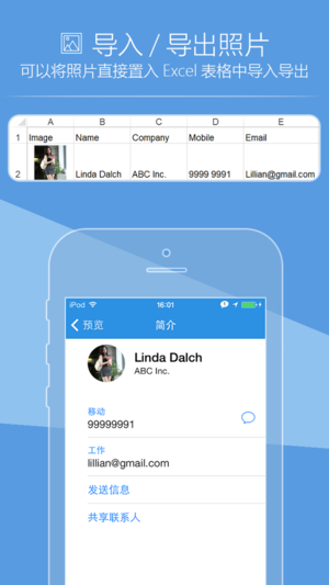 SA 通讯录提供了一种不需要iTunes就能导出及导入通讯录的最佳方式,让你能轻松操控你的iPhone中最有价值的数据。 1. 你可以使用Microsoft Excel、OpenOffice.org或其他Excel软件编辑iPhone通讯录。 2. SA 通讯录将你iPhone中所有联系人信息连同照片打包到一个ZIP文件中,并通过Email、USB或仅能在本地局域网中访问的网页等方式导出到你的电脑中。 3. 不必再依赖iTunes备份通讯录,也不需要将你的通讯录放到Yahoo或其它服务器上,只需一个zip文件就可以了。 4. 你不必再担心当你的iPhone与iTunes同步时不慎清除了通讯录…