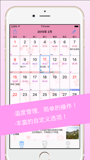 “Ladi Cal“是一个应用程序来管理,妇女的基础体温。 显示下次经期和排卵将进入一个温度和少数项目,每天早上预定日期。该图显示了体温再次发生变化。 ※您可以查看图表和日历以及输入体重和身体脂肪百分比以及温度。 通过在基础体温和身体脂肪百分比,体重变化,请帮助管理你的健康。 “Ladi Cal“功能,如下所示。 【输入和显示的基础体温】 每天早晨基础体温,进入日历将在图形显示。在低温日历上的蓝色高温,显示为红色。 【输入和显示体重和身体脂肪百分比】 和图形显示在日历以及在基底体重和身体脂肪率输入的值。 【 Share data with Health app】 Ladi…