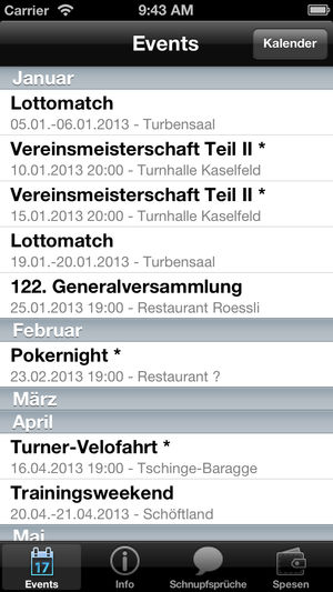 Lade dir iTVB auf Dein iPhone und du bist informiert: - Event-Kalender mit Kalender-Import - Die Aktuellsten Infos jederzeit verfügbar - Schnupfsprüche für's Turnfest - Spesenformular für die einfache Abrechnung