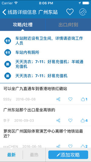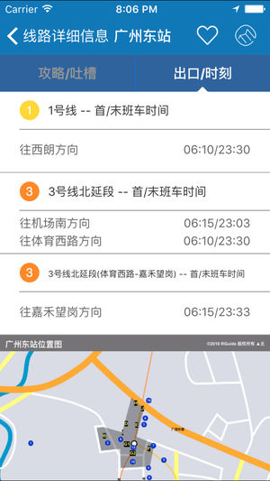 ----老牌地铁查询应用,累积超过1000万用户的出行选择---- rGuide是Route Guide的简写,意为路线指引,专门提供本地出行、旅游交通的路线指引以及地铁周边多样的消费指南服务。 【主要功能】 ◆操作最简便:无论是查询车程还是车站资料,最快只需点击2次即可完成! ◆选站最快速:独创的GPS自动定位、线路图直接点击、站名地标搜索,总让您以最快速度选到车站! ◆离线车站交互式地图,信息最完整:除了调用标准地图服务外,提供独家出口地标及街道离线地图! ◆最早/最晚出发时间:rGuide独创,智能计算您可到达目的站的最早/最晚地铁搭乘时间! ◆多种语言选择:三种语言界面,通行两…