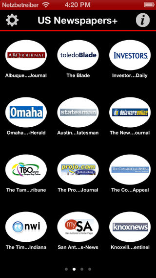 The best selling news applications in several countries: UK, Canada, Germany, Italy, Australia, now in US. - USNewspapers: Akron Beacon Journal, Albuquerque Journal, Arizona Daily Star, Arkansas Democrat-Gazette, Asbury Park Press, Austin American-Statesman, Boston Herald, Chicago Sun-Times, Chicago Tribune, Contra Costa Times, Daily Herald, Daily News, Dayton Daily News, Democrat and Chronicle, Detroit Free Press, El Nuevo Día, Fort Worth Star-Telegram, Fresno Bee, Grand Rapids Press, Houston Chronicle, Intelligencer Journal-Lancaster New Era, Investor's Business Daily, Knoxville News Sentinel, La Opinión, Las Vegas Review-Journal, Lexington Herald-Leader, Los Angeles Daily News, Miami Herald, Milwaukee Journal Sentinel, New York Post, Omaha World-Herald, Orlando Sentinel, Pittsburgh Post-Gazette, Pittsburgh Tribune-Review, Richmond Times-Dispatch, San Antonio Express-News, San Francisco Chronicle, San Jose Mercury News, South Florida Sun-Sentinel, St. Louis Post-Dispatch, St. Paul Pioneer Press, St. Petersburg Times, Star Tribune, The Advocate, The Arizona Republic, The Atlanta Journal-Constitution, The Birmingham News, The Blade, The Buffalo News, The Charlotte Observer, The Columbus Dispatch, The Commercial Appeal, The Courier-Journal, The Denver Post, The Des Moines Register, The Detroit News, The Florida Times-Union, The Hartford Courant, The Indianapolis Star, The Journal News, The Kansas City Star, The Morning Call, The News Journal, The News Tribune, The News and Observer, The Oakland Tribune, The Oklahoman, The Orange County Register, The Oregonian, The Palm Beach Post, The Plain Dealer, The Post and Courier, The Providence Journal, The Record, The Roanoke Times, The Sacramento Bee, The Salt Lake Tribune, The San Diego Union-Tribune, The Seattle Times, The Star-Ledger, The State, The Sun, The Tampa Tribune, The Tennessean, The Times of Northwest Indiana, The Virginian-Pilot, The Washington Post, Tulsa World And also: ABC, Access Hollywood, Al Jazeera, The Atlantic, Bloomberg, C-SPAN, CBS, CNN, Chicago Sun-Times, Chicago Tribune, Christian Science Monitor, Center for Public Integrity, Democracy Now!, E! Online, Entertainment Weekly, Forbes, Foreign Policy, Fortune, Globe and Mail, GlobalPost.com, GlobalVoices, Haaretz, The Hill, McClatchy, Mosaic, Mother Jones, National Journal, The New Republic, New York Daily News, New York Observer, The New Yorker, Newsweek, Newsy, NPR, OpEdNews, PBS NewsHour, People, Politico, ProPublica, Reuters, Roll Call, Rolling Stone, The Root, Salon, San Francisco Chronicle, Seattle Times, Slate, Sunlight Foundation, TIME, TMZ, USA Today, Wall Street Journal, Washington Independent, Washington Times, Youth Radio Some characteristics: + Excellent graphics + Large selection of newspapers + Read each newspaper by sections: World, Local, Politics, Sport, Business, Technology, Science, Health, Arts, Travel, etc… + One tap to share your article to Facebook, Twitter, Instapaper, Read It Later, GoogleReader, Pinboard, Tumblr, Delicious. Or you can copy, email, open the article in Safari. + One tap to sync all the newspapers/blogs to your iPhone/iPod Touch. You can read all the newspapers' articles without having internet connection + Ability to reorder your newspapers/sections + VoiceOver accessibility support for vision-impaired users Some reviews from our users for our apps so far: + Great selection of news sources and easy to access to the stories that interest me. Simple UI design, everything is a thumb tap away + The most comprehensive news application ever on the AppStore ... Read more in our blog post about what's new and how to use the new features: http://sunflowerapps.com. We love to hear your thoughts, don't hesitate to send us a message: support@sunflowerapps.com or you can simply write a review on the AppStore. Follow us on Twitter: @sunflowerapps FAQ: http://sunflowerapps.com/FAQ