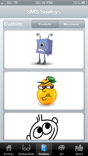 Welcome to the world of Smileys. SMS Smileys now includes great new features: Custom Smileys: Unique Smileys. Smileys Max: Super-Sized Smileys. Smileys & Walk: Safely type messages to your friends while on the move. Smileys Art: Provides a great introduction into the world of sending fun messag…