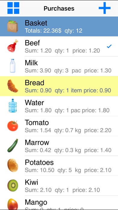 Happiness is not in money but in Shopping said Marilyn Monroe. Comfortable and functional app will help you to quickly keep track of the acquisition of goods and foods in hypermarkets and stores. Allows you to sort, analyze costs, keep a record of purchases, exchange data. Has a visual, color, sound alerts. It works on iPhone and iPad. This app allows you to share grocery list with other through the available services: SMS,iMessage,web Service. Create shopping lists for: - families, children and parents; - home, cottage or car; - food and household goods; - clothes. Advantage: - no advertising; -Widget; - Magnify (zoom) of small text on the packaging; - Stock management products in your home; - Exchange data by web service; - Automatic selection of icons for product groups; - Correction of the selected choice icons; - A reminder of purchases from the schedule, - A reminder of dangerous E supplements, - Taking into account modes of shopping, - The formation of baskets from the list of goods - Transfer of a shopping list to another application; - Reception of a shopping list from another application; - Calculation of the total value of all goods; - Enter the product names in any language and currency; - Fast and easy input of names, price, and quantity; - Calculation of the value of all goods in the basket; - Take good to remember; - Indication of the presence of photographs of the goods; - Highlight the last choice of purchase; - Top 10 of the cost of goods; - Maintain a history of payments total basket; - Sort items by name and value, - number of purchases on the icon; Support for the languages: English, German, Spanish, Italian, French, Russian.