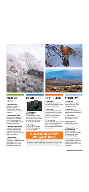 Outdoor Photography is for the serious amateur and semi-professional photographer who is passionate about the British countryside and its wildlife. It is the UK’s only photography magazine dedicated exclusively to the coverage of landscape, wildlife and the environment. Each issue features an inspir…