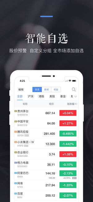 【产品简介】新浪财经是中国财经领导品牌,是亿万投资者的选择; 【产品特点】 *财经新闻:7*24小时追踪全球金融动态,政策风向,股票重大情报,投资机会一览无余; *账户同步:新浪财经PC网站、手机新浪网、财经客户端三大平台一个账号,轻松操作自选股; *主力资金:实时查看沪深A股资金数据,跟踪主力动向; *大数据诊断:基本面、新闻舆情、技术面、资金面全面诊断个股价值; *股市直播:财经大V深度解读股市机会,掌握股市先机; *智能预警:自选股智能预警,公告、研究报告第一时间推送到达; *开户交易:支持沪深、港股、美股开户和交易; 【联系我们】北京市海淀区西北旺东路10号院西区8…