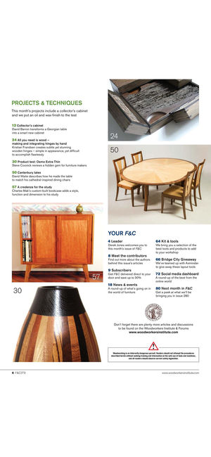 Furniture & Cabinet Making is the UK’s only magazine dedicated to the finer aspects of contemporary and classic woodwork. With an emphasis on quality, the magazine aims to promote excellence in furniture making by showcasing modern and classic furniture design and the associated techniques. Topical…