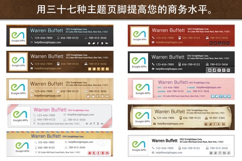 ■ 想要通过电子邮件留下专业图像吗? 电子邮件页脚是最迅速、最便利的高档邮箱卡App.。 用三十七种主题页脚提高您的商务水平。 ■ 对如下人最有用的方法! - 商务界人士 - 职业女性 - 自由职业者 - 需要自我宣传的人 - 多用电子邮件进行业务的人 - 考虑发送电子邮件可以取决于事业成功的人 - 想要使用与人不同方法的人 ■ 用电子邮件页脚发送电子邮件… - 给您的事业对象留下强烈的印象和有品位的商务举止。 - 在竞争激烈的商务界以独特的形象提高吸引力。 - 易于导引您的主页、Twitter、 Facebook。 - 使人认为您是一位专家。 ■ 电子邮件页脚表是… - 基本信息:确认名字、公司、部门、职位 (在Mobile立即确认公司地址的地图) - 通讯录信息:电话号码、手机、传真号码、电子邮件(在Mobile立即打电话) - Social URL 信息:Twitter、 Facebook 、主页 等 (在Mobile立即打开) - 图像信息:可以注册 面对图片、公司标志、图标 ■ 其他功能 - 将在iPhone制造的页脚、可以使用在PC (但,按电子邮件的服务,其页脚的功能有限) - 将在PC使用的页脚可以使用在iPhone - 通过‘开始App就发送电子邮件’的功能节省时间 - 在主题可以选择及更换文字颜色和 Social图标 今天,你提升你的业务素质。