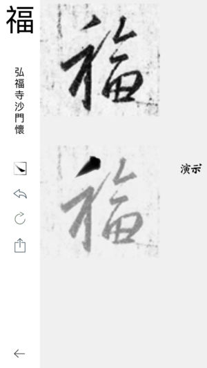 《怀仁集王羲之书圣教序》,虽是集字成碑,但因怀仁功力深厚,又是谨慎从事,终能各尽其势,完好地再现了王羲之书法的艺术特征,成为王字的一个大宝库,是行书入门重要法帖。 --单点动作:显示单字,有书写演示,可手写临习,可导出书写结果 --双点动作:列出该字出现的所有写法 --上下方向划动:显示单列 唐贞观十九年二月,玄奘法师在印度求法十七年后,携梵本佛典到长安,唐太宗李世民见之甚喜。玄奘奉命于当年三月即居译场弘福寺翻译佛经。贞观二十二年,太宗亲自为之撰序,时皇太子李治作记。后由弘福寺和尚怀仁从唐内府所藏王羲之书迹及民间王字遗墨中集字,将与太宗答敕、皇太子笺答、玄奘所译《般若波罗蜜多心经》一并成碑。…
