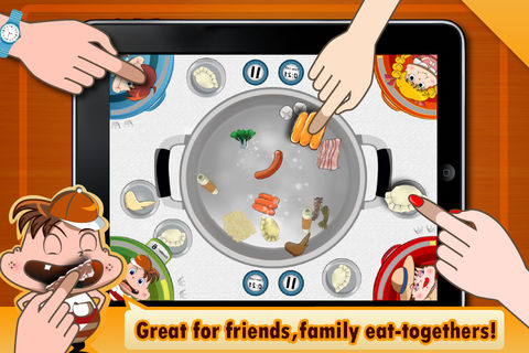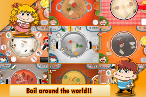 ***還有iPad Version: Rolling Boil! HD*** http://itunes.apple.com/app/rolling-boil!-hd/id491648637 火锅家族最爱吃美味的火锅,他们决定环游世界并且发誓要尝遍全球各地享誉盛名的火锅。现在就请你带领火锅家族一起去挑战世界各地不同风味的火锅吧。 单人模式 玩家需要带领火锅家族征服来自世界各地的火锅美食。每个美食主题都有它自己的特色:每种美食都有代表的分数值以及能量值,并且烹调的时间也各有不同。怎么样在限定的时间内让每个角色尝到美味的事物并且吃饱肚子,这就要考验你的技术啦! 多人对战模式 让四名玩家同时在一台iPhone/iPad的操作界面上玩此游戏。四名玩家争相“品尝”美味的火锅。 游戏玩家需要运用自己的智慧及策略,让自己在最短的时间吃的最饱,达到指定的分数,成为大赢家。 在争夺美味食物的时候,玩家除了要考虑食物本身的分数值以及能量值还可以利用冰棋淋、可乐、无敌星、指天椒、墨鱼和闪电等工具来对付其他的玩家。 此外,游戏中还设置了“极速狂食”,“气泡指天椒”,“辣椒棒球”,“狂摇可乐”等狂热模式。在游戏中会随机出现这些狂热模式阻挠玩家,能不能通过就要看玩家的反应能力和运气啦! 此游戏动感十足,充满了爆笑刺激的欢乐元素。让你随时都想和身边的朋友一起来一场充满欢笑的火锅大战。 在此游戏里你可以品尝到的火锅类型包括: 中国香港杂感火锅 瑞士芝士火锅 泰国海鲜火锅 日本Shabu Shabu 火锅 韩国泡菜火锅 印度咖喱火锅 意大利蔬菜火锅 还有更多种类将持续更新,欢迎你的意见!
