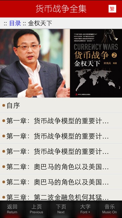 货币战争1,货币战争2 金权天下,货币战争3 金融高边疆,货币战争4:战国时代 合集。 2013-01-01: 增加 《郎咸平说》系列 汇集郎咸平最新著作、演讲、电视、网络等媒体 合集208部(篇)。 PR Reader 6.0, 为您提供最佳的阅读感受: 技术创新点: 1 智能书签:让你感觉爽的很 2 一键切换:简洁方便,在正常逻辑内,所有操作一键完成,不让您多点一次 3 满屏滚动2种阅读模式:滚动模式自由设置页面字数,自由选择您的阅读习惯 3 智能切换:翻页、章节、目录,全部智能判断,自动切换。支持任意位置添加目录自由图片 4 树状分类:相对于一本书,PR Reader提供是一组书,例如,对于某本小说,可以将作者生平资料,书籍分析后记,书籍评论,全部组织提供给您 5 历史前进后退:延续电脑阅读模式 PR Reader ,还会为您做更多…… 期待你的建议,一定尽快响应,请邮件至:procorosso2011@gmail.com 货币战争: 序言 起航的中国经济航母,会一帆风顺么? 第一章 罗斯切尔德家族–欧洲唯一的强权 第二章 国际银行家和美国总统的百年战争 第三章 美联储私有的中央银行 第四章 一战与大衰退:国际银行家的“丰收时节” 第五章 廉价货币的“新政” 第六章 统治世界的精英俱乐部 第七章 诚实货币的最后抗争 第八章 不宣而战的货币战争 第九章 美元死穴与黄金一阳指 第十章 谋万世者 附录 日本惨败后的这一站:“货币战争”贴身紧逼中国 货币战争2 金权天下: 自序 第一章:货币战争模型的重要计者 第二章 奥巴马的角色以及美国美元的终结 第三章:第二波金融危机何其猛烈? 第四章:谁是金融危机最大的受害者 第五章:次贷危机背后的阴谋 第六章 我们应当如何应对这波新的危机 第七章:为什么要买黄金? 第八章:与名流对话 后记 货币战争3 金融高边疆: 自序 第一章 金融高边疆的陷落 第二章 明治维新与洋务运动 第三章 “四一二”政变:蒋介石的“投名状” 第四章 红色中央银行 第五章 蒋介石的金权天下 第六章 皇权与金权 第七章 金陵梦断 第八章 人民币的诞生 第九章 金融高边疆与人民币国际化 第十章 白银的光荣与梦想 货币战争4:战国时代 第一章 雄心初起,美元失败的远征 第二章 摄政天下,剿灭英镑割据 第三章 货币冷战,拒绝美元就是拒绝和平 第四章 合纵连横,欧洲货币的崛起与困惑 第五章 东方欲晓,中日工业化的角力 第六章 蛇形渐进,通往欧洲合众国的欧元之路 第七章 债务驱动,美利坚盛世的脆弱 第八章 亢龙有悔,中国模式3.0的升级 第九章 战国时代,地平线上的亚元 ------------- 《郎咸平说》系列 2011 - 2012 年 ....... 二氧化碳导致气候变暖是惊天大阴谋?(2012-01-06) 外资是如何通过蒙牛威胁伊利的(2011-12-31) 气候问题大骗局---欧盟征收碳排放税的荒诞理由(2011-11-26) 沈阳震撼演讲全文:中国经济得了重病(2011-11-13) 是谁一手酿成了希腊危机?(2011-11-07) 郎咸平演讲称中国已破产(2011-11-05) 小悦悦事件表明国人已从“愤青”到“不在乎”(2011-11-01) 郎咸平:占领华尔街,谁来捉拿金融幽灵?(2011-10-25) 高房价让中国失去创造力(2011-9-13) 中国已产生债务危机 美经济一片向好(2011-9-5) 谁谋杀了中国的大学生(2011-8-29) 高铁时代的恐慌(2011-7-25) 阳光下的投毒---转基因的安全之患(2011-7-4) 我不怕猪肉涨 怕地方债务大(2011-7-4) 地沟油是中国最完美产业链(2011-7-3) 国际板谁能赚大钱(2011-6-8) 中国应该抛弃对美国的幻想(2011-5-12) 郎咸平:中美战略与经济对话,讲什么?(2011-5-11) 当代新帝国主义真相之二:品牌剥削(2011年5月5日) 相亲节目、拜金主义和高收视率(2011-4-22) 没有硝烟的战争已经开始(2011-4-19) 谁在制造经济恐慌?(2011-4-18) 骆家辉来了,中国的日子会更难(2011-4-7) 中国低工资高物价的惊人秘密(2011-3-10) ……