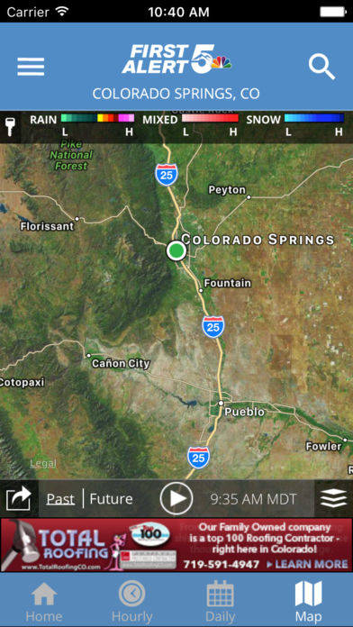 KOAA-TV is proud to announce a full featured weather app for the iPhone and iPad platforms. Features: • Access to station content specifically for our mobile users • 250 meter radar, the highest resolution available • Future radar to see where severe weather is headed • High resolution satellite cloud imagery • Current weather updated multiple times per hour • Daily and Hourly forecasts updated hourly from our computer models • Ability to add and save your favorite locations • A fully integrated GPS for current location awareness • Severe weather alerts from the National Weather Service • Opt-in push alerts to keep you safe in severe weather