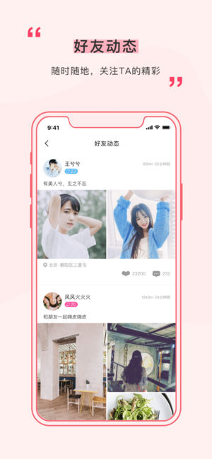 遇见,具有年轻气息的约会交友APP,帅哥美女约会神器,为6000万年轻人提供优质、贴心的移动交友服务。 【为什么使用遇见】 枯燥的生活需要不一样的新鲜感 改变沉闷的社交现状、提高交友效率,现在你不只可以发现附近的陌生人。 更可以与小哥哥、小姐姐连麦群聊,话题王、小纯洁、老司机,统统都可以。 【遇见功能亮点】 语音群聊:30万热趣语音聊天室,声控的聚集地,游戏、美食、情感分享、侃大山想聊就聊。 附近用户:有爱不躲藏,发现身边的帅哥美女闺蜜朋友怪咖小伙伴,表情、语音、视频发送即达。 好友动态:随心分享生活点滴,你的小心情可能是TA珍爱的今日头条。 …… 在遇见,每天都能发现新乐趣,你不试试吗?…