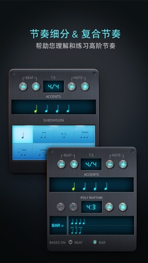 Pro Metronome - 最好的专业节拍器! 2014年被苹果WWDC 广告 “我们离不开的应用” 中推荐。 ---------------------------------------------- Pro Metronome是专为iPhone/iPad设计的节拍器。即便免费的版本, 也足矣适合近乎所有的乐器演奏者使用。新的节拍界面能够让您更自由的设置节拍,此外,Pro Metronome还提供有多达13种节拍器音色。拜谢于使用RTP(实时声音回放)技术, 它的节奏十分精确稳定。 现在您也可以自定义每一个节拍的重音。不同于别的节拍器,Pro Metronome提供了“强”,“次…