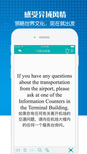 出国旅游, 如何才能脱口而出一口流利的英语?《出国旅游英语》取材于旅游度假生活的方方面面, 范围广、实用性强, 涵盖从入境到购物、问路、医疗, 几乎包含了旅行中的每一个环节, 美籍专家纯正美音录制MP3, 2000多个关键句, 2小时课程, 不仅有标准对话和常用对话, 也有常用词汇, 让你不再“有口难言”.《出国旅游英语》不仅是您出国准备时大幅提升听力及口语的助手, 也是您出国后紧急情况下英语单句或词汇速查手册。 学好英语,世界触手可及。感受异域风情,领略各国文化,亲临各地风景名胜。 掌握关键句,世界各地任我行! 探险去吧,现在就出发! 【软件特色】 * 每日听力,超大文本同步显示。…
