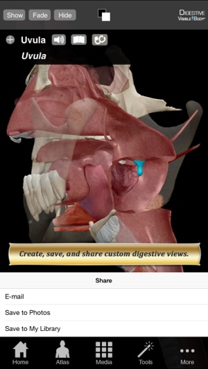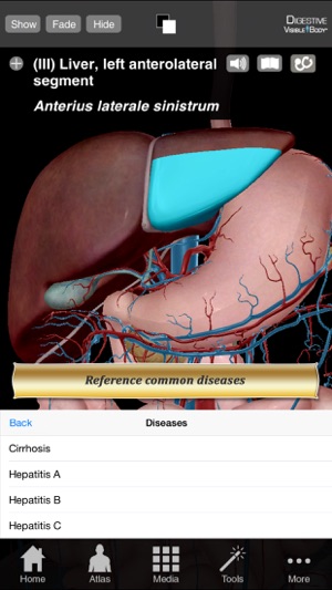《消化系统解剖图谱》(Digestive Anatomy Atlas) 是消化系统解剖、生理和常见病症的快速视觉参考。这款 iPhone/iPad 应用程序包括数十个三维模型、动画和插图。这个程序是用英语。 这个应用程序非常适合于专业人士参考,并可作为消化道、咀嚼、吞咽、营养吸收、胃食管反流病和痔疮等疾病患者的教育工具。 此应用程序的内容包括: (1) 动画和插图。 (2) 数十个消化系统结构的三维模型,以及其他身体系统的有限数量的模型。 (3) 超过 100 个消化系统解剖结构的定义和发音。 (4) 超过 25 种常见疾病的描述。 您可以用这个应用程序做什么: (1) 查看消化系统…
