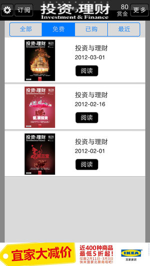 《投资与理财》简介 《投资与理财》杂志社于2000年正式创刊,凭借其全面、专业、实用的投资分析与理财报道受到广大读者的认可和好评,全面覆盖中国邮政储蓄银行、中国民生银行、华夏银行等金融机构网点,进而辐射多层次相关客户群体,是目前中国最实用、最贴近读者心理的理财读本,实际发行量稳居同类杂志之首。 关于本杂志订阅注意事项: 1、《投资与理财》杂志为半月刊,一个月二期 2、订阅杂志,您可以选择 .订阅三个月,价格5.99美元或40元人民币 .订阅六个月,价格10.99美元或73元人民币 .订阅1年, 价格18.99美元或123元人民币 订阅从下个月开始,本月杂志赠送 3、过刊价格为…