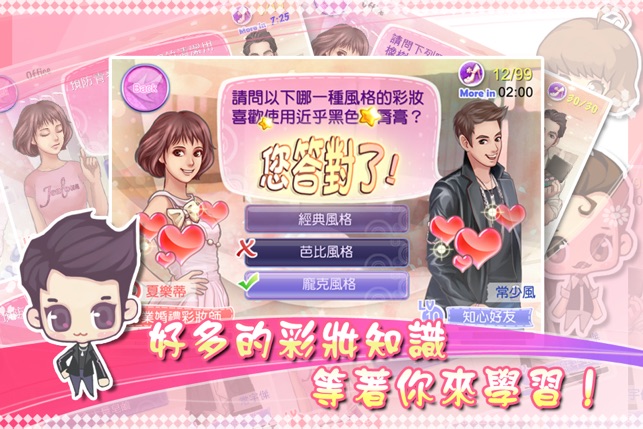 ★★★★★大宇資訊首次跨足偶像劇合作,打造獨家戀愛APP!★★★★★ ★★★★★叮咚~叮咚~女孩專屬,讓您變美的美妝時尚遊戲!★★★★★ ★★★★★內在美重要,外在美更可靠,這一年,讓我們一起變美吧!★★★★★ 一個永遠掛著濃密睫毛和閃耀唇蜜,舉止高調的本土美妝Miss Beauty千金嬌嬌女。 一個逃避音樂夢、拒絕愛情,卻以巧手為女人打造美貌的Jealous國際彩妝CEO兼首席彩妝師。 看似毫無交集的兩人從一開始的不打不相識、到卸下所有偽裝。他們才發現,原來愛就是能實現一切夢想的神奇彩妝…… 落難彩妝小公主夏樂蒂(李佳穎飾),為了復仇進入彩妝領導品牌Jealous; 並邂逅知名的四大彩妝…