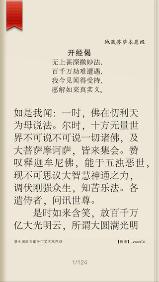 佛缘是一款佛经佛音佛像的集成软件,内含62部佛经、48首佛音、88佛像。 如果您喜欢看佛经、听佛音,佛缘无疑是您最好的选择。 软件特点: √ 精选62部经典佛经同时通过作者精心整理编辑,极佳的阅读体验 √ 设置书签和目录的跳转功能,阅读佛经更方便 √ 自带搜索功能,快速找到想诵读的佛经 √ 自动记忆和阅读进度跳转功能,让您可以继续上次的页面阅读和快速的跳转到任意页 √ 收录整理了大量常诵的佛经,其中包含大宝积经、大般涅槃经等字数较多的经典佛经 √ 收录了48首经典的佛咒和佛音,同时自带搜索功能 √ 支持定时播放功能 √ 支持后台播放功能 √ 支持 顺序循环、单曲循环、随机播放等三种播放模式 √ 内置 上一曲、下一曲、播放暂停、进度调整、音量调节等控制模块 √ 无处不在的 【正在播放】功能,让您阅读佛经、观看佛像时即可控制播放的内容、模式等,无需跳转到佛音界面 √ 内含88张佛像,自带搜索功能,您可以快速查看任一佛像 本软件为简体中文版本,繁體版本请搜索 ''佛緣完整版 - 佛經佛音佛像大全''. 愿以此功德,普及与一切,我等与众生,皆共成佛道. 欢迎关注我们的新浪官方微博和博客,以获得更多的一手资讯与服务! 微博: http://weibo.com/2198540112 我们注重每一位用户的使用体验,但是我们无法在评论中回复您。如有任何使用上的问题和意见,请随时通过我们的客服邮箱sffofn@gmail.com与我们联系,我们将尽最大的努力为您提供服务。