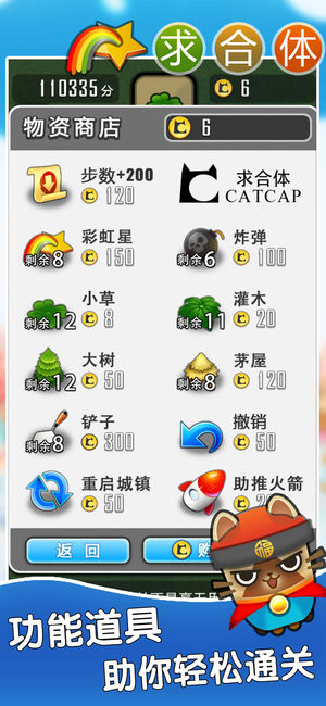 很怀念的单机三消游戏!让人欲罢不能的休闲益智体验! 这是一个充满爱的村子,名字叫三里屯。在这个爱意浓浓的村子里,居民们的生活快乐又安宁。直到有一天,玩家将掌管这片土地,为这片土地的人们带来更加幸福的生活。当然,只有玩家驾临这个村子之后,才会明白:只有真正的合体,这个村子才会有更加光明的未来。 《求合体》以合体为主题的全新游戏,每一株草丛、每一幢房屋、每一只猫咪都时时刻刻哭喊着求合体,一切都取决于玩家的旨意,一切都决定于玩家的安排。玩家的每一位子民,都在等待英明的合体决定。