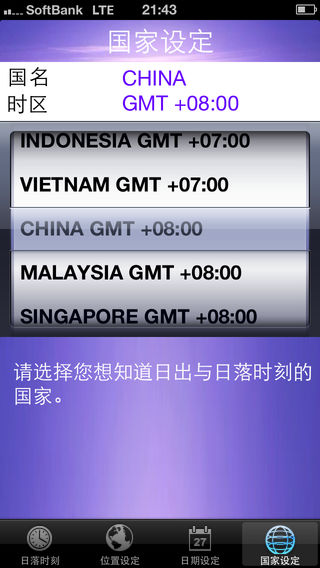 而这款软件「曰落手表」可自动显示您的所在地与时刻、您随时随地便可轻松得知当地的日出与日落时刻。 「曰落手表」不仅限于影片中的使用目的、在您的旅途、摄影、出行、户外运动,钓鱼等活动中都可很好的被利用。 例: 您在游览胜地想拍一张美丽的海上日落图等。 机能: •精确的显示日出与日落的时刻。 •可自动显示您所在地的日出与日落时刻。 •输入您想利用的日期与地点则可精确的预测当时的日出与日落。 对象地域: 中国 泰国 印度尼西亚 越南 马来西亚 新加坡 日本 韩国