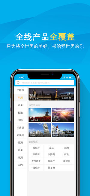 凯撒旅游客户端是为凯撒国际旅行社为旅行者量身打造的全方位专业旅行服务平台。 --无论是您想出国跟团游,还是度假自由行,亦或是选择邮轮旅行,定制出游,多种出行方式和遍布全世界的目的地国家:美国日韩欧洲亚洲日本等等等的任您挑选。 --当您在出发前还是在行程中,专业的旅游顾问及向导随时贴身服务,为您提供旅途中详尽的当地信息,加上简单的出行小工具,旅行的吃喝玩乐尽在掌握! --旅行玩儿到High,乐不思蜀?在凯撒旅游App上与其他旅行好友互动分享,旅途友谊不断线! --下次去哪儿玩儿?让凯撒旅游App根据您的兴趣爱好准备旅行目的地,简单便捷的找到您心怡向往之地,还等什么,叫上小伙伴一起,继续出发看世界…