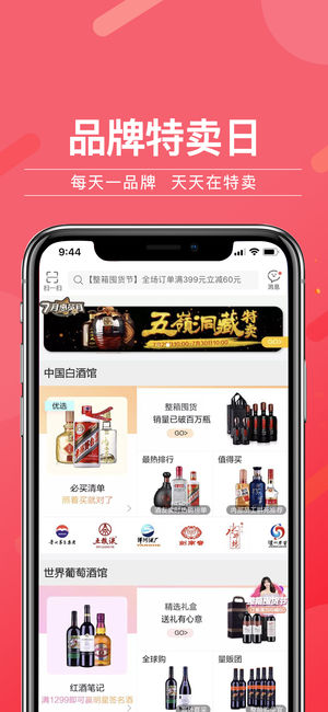 特色功能 1、品牌特卖:每天一品牌,天天在特卖,1元起。 2、掌上秒拍:海量名优酒品,低至9.9元。 3、精选频道:整箱购、家乡美酒、老酒味道、新品首发。 4、一键选酒:热卖好酒、名优白酒、红酒直采、喜宴用酒。 5、CLUB会员权益:会员专享价、开卡送酒、全年赠券、好货提前秒、私人订制 、购物返现 6、领劵中心:先领劵,再下单,享优惠。 7、满百包邮,支持货到付款。 选择我们的理由 买真酒,就上酒仙网!酒仙网是专业网上酒水商城,正品保真,品类齐全,涵盖白酒、葡萄酒、啤酒、洋酒、黄酒、保健酒、酒具等,满百包邮,支持货到付款,酒仙网在全国建有天津、上海、广州、成都、武汉五大仓储中心,真品美酒极速…