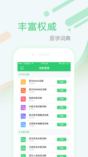 “医药学大词典”是医脉通旗下一款供医、药等专业人士使用的中-英互译词典软件。 医脉通网站(www.medlive.cn)已凝聚各学科的医生用户达180万之多,是中国医生的临床决策好帮手! 医药学大词典app内含近400万医学专业词汇,主要功能包括:英汉互译查询,PDF英文文献/英文网页取词翻译;摄像头查词;跨软件取词翻译;同时,还可以随时浏览各学科专业资讯等。