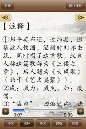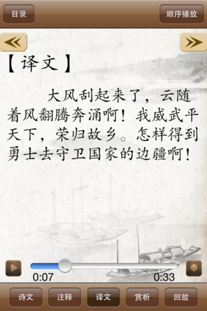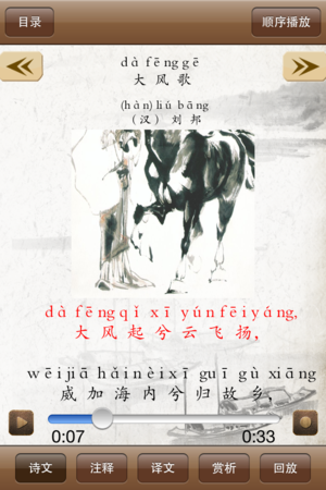 学习古诗是培养学生民族情感、学习民族文化的一种好途径。调动少年儿童学习古诗的积极性、传播优秀教师的教学经验、弘扬传统文化,是研发制作者创意的初衷。《小学生必背古诗》产品内容针对性强、引导性明显、寓教于乐、结构层次鲜明,难度深浅适宜。 《小学生必背古诗》集范读、注释、译文、赏析、回放等功能于一身。范读便于学生模仿和学习;注释和译文利于学生对古诗意义进行理解;赏析方便学生从整体把握诗歌意境的同时加深对古诗内涵的体会;回放便于学生根据自身需要播放录音文件。专家浑厚古朴的发音便于学生融入古诗意境,体会古诗古韵。软件应用界面色彩清新明快,提升了诵读体验,宜学宜用。…
