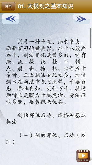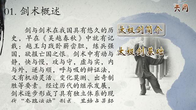 32式太极剑是国家体育总局于1957年组织创编的一个太极剑普及套路。这套太极剑既保留了传统杨式太极剑的风格特点,又具有易推广性,深受大众的喜爱。这套太极剑由32势动作及起势和收势组成。整个套路共分4组,每组8个动作,往返两个来回。32式太极剑套路结构简单、数量合理、内容充实、易学易练,演练起来轻灵飘逸。 产品示范视频由李德印先生讲解示范,动作规范精准,教学方式非常直观有效,通过多层次演讲和讲解确保练习的准确性;教学采用完整示范演练与分段讲解教学、要点讲解提示、正面示范相结合的方法,对每个动作要领进行详细的讲解示范;产品还配有32式太极剑要点提示的文字说明,便于理解…