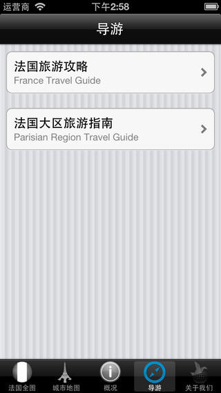 《法国离线地图旅游版》由中国地图出版社的《世界分国地图》系列改编而来,该系列地图覆盖了世界200多个国家和地区。 特点: #纸图版畅销30年 审图号GS(2011)1441号 #全新改版 #详细地名 #中外对照 #内容全面 #地图权威 《法国离线地图旅游版》提供了地图浏览 法国、摩纳哥概况 旅游导览 地点查询等功能。 1、地图浏览提供了包括法国全图和5个主要城市(巴黎、里昂、马赛、戛纳、摩纳哥)的中英文对照地图,地图能够进行点位查询。 2、法国、摩纳哥概况从自然 历史 文化 经济 城市和旅游地 知识集锦等几个方面全面的展示了法国作为欧洲历史上重要国度的概况。 3、旅游导览提供了法国旅行攻略和法国大区旅游信息,是您旅游法国的必备指南。 法国旅游攻略包括: 1)最佳旅游季节:介绍了法国旅行的最佳季节。 2)衣着与气候:介绍了法国的气候和旅行法国的衣着。 3)时差:介绍法国的时区和与中国的时差,同时还有夏时制的介绍。 4)航班与行李携带:介绍了旅行法国时乘坐航班与行李携带的信息。 5)海关入境:介绍法国入境与离境相关手续和问题包裹携带物,携带现金等情况。 6)酒店住宿:介绍法国酒店的相关情况和入住时的注意事项。 7)货币兑换:介绍如何在法国兑换货币。 8)购物退税:介绍法国购物退税的流程和手续。 9)注意事项:包括了遭遇盗窃、保险、疾病等情况的相关注意事项。 10)签证和费用:介绍了旅行法国的签证流程和签证费用。 11)签证问答:介绍了办理签证时的常见问题。 12)法国大使馆和中国驻法国大使馆:介绍了法国大使馆和中国驻法国大使馆的地址、电话等联系方式。 法国大区旅游指南包括各个大区的旅行信息: 1)广袤大地——皮卡第 2)欧洲历史摇篮——阿尔萨斯 3)温泉休闲——阿基坦 4)火山温泉——奥弗涅 5)葡萄酒之乡——勃艮第 6)传说与遗产之地——布列塔尼 7)文化与自然的结合——中央卢瓦尔河谷 8)湖泊与森林——香槟阿登 9)美景与美食——利穆赞 10)海鲜与美酒——朗格多克-鲁西永 11)浪漫假日——巴黎-法兰西岛 12)自然风光——弗朗什孔泰 13)微缩大陆——科西嘉岛 14)绿色森林——洛林大区 15)运动乐园——南部-比利牛斯 16)博物馆之乡——北部-加来海峡 17)历史和文化——诺曼底 18)水上运动乐园——卢瓦尔河谷下游 19)罗曼艺术的瑰宝——普瓦图-夏朗德 20)蓝色海岸——普罗旺斯-阿尔卑斯 21)滑雪胜地——罗讷-阿尔卑斯 22)反差强烈的土地——蔚蓝海岸 4.支持iPod Touch、 iPad 和iPhone,支持iOS6和retina显示屏。 5.本地化语言支持。 本产品充分利用iOS平台的新特性, 将多点触摸, 浮动显示, 横竖旋转等特点与地图功能结合起来, 使用更加简洁方便。《法国地图离线版》是您了解法国, 了解巴黎, 旅游法国的好帮手。, 我们一直在为向大众提供内容更丰富,使用更方便,数据更准确的地图产品而努力。千图网 专心作图 专业作图!敬请期待千图网更多其它地图产品。