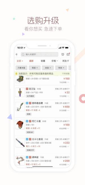 梦幻西游藏宝阁是网易游戏为梦幻西游电脑版玩家提供的游戏道具交易平台。在这里,玩家可以随时随地的选购游戏商品,以及管理寄售的游戏商品。 梦幻西游藏宝阁有什么特色? ·随时随地交易 摆脱了游戏和电脑的限制,你可以在任何时间任何地点交易,不错过每一件好货。 ·安全有保障 你的每一笔交易都与游戏数据一一对应,不用提供帐号密码,虚拟财产安全有保障。 ·使用方便 只需登录游戏帐号,动动手指,你购买的装备、道具、召唤兽就能自动的转移到你的角色下。 使用中遇到任何问题,请通过“我的”-“设置”-“意见反馈”告诉我们~