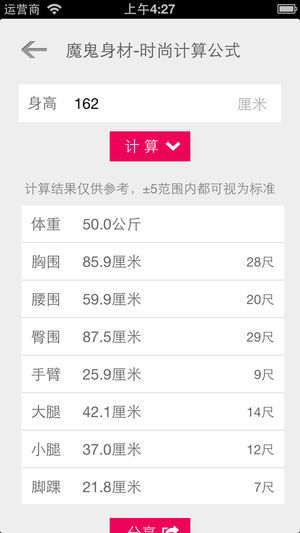 - 体重指数(BMI)测算 衡量人体胖瘦程度及健康状况常用的一个标准 - 头身比例 黄金身材比例测试 - 理想身材 新时尚计算公式