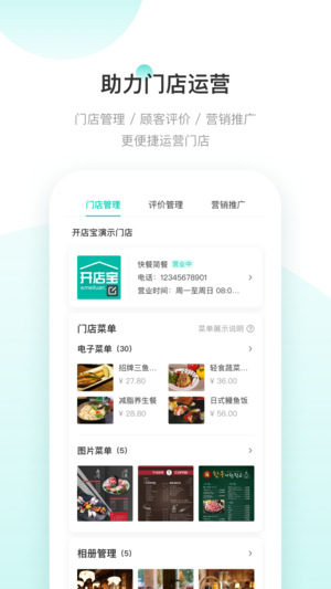 美团开店宝-轻松开店,招财进宝! "美团开店宝"(原美团商家)是美团网出品的移动端美团商家平台,商家可以随时随地在手机上轻松进行自助开店、门店认领、发布团购、美团券验证、回复评价、团购项目管理、查看经营效果、行业对比、财务对账等操作。 通过开店宝免费开店,相比其他的微商、微店应用,美团合作商家可以直接触达2亿美团用户,真正帮您做到招财进宝。 主要功能: 1、免费开店 通过手机号注册即可免费成为美团开店宝的合作商户! 2、手机验券 在手机上输入验证码或者扫描二维码即可完成美团券验证,一键查看验证历史。 3、评价管理 通过美团开店宝,卖家可以及时查看用户对团购项目的点评,及时互动,获取好评。 4、…