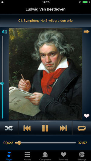 √√带有知识的音乐播放器√√ 您将聆听到9位伟大作曲家创作的人类音乐精华《世界十大交响乐》, 您将看到伟大作曲家们的肖像, 您将阅读伟大作曲家们的介绍. 您将放松心情, 启迪智慧, 开拓思维, 恢复活力! 听一听, 为了您和您的孩子! √√应用特色√√ -高质量的音乐 -播放顺序: 随机播放或按顺序播放 -重复模式: 单曲重复, 循环播放所有曲目, 循环播放收藏曲目 -音乐列表: 作曲家音乐列表, 收藏音乐列表, 所有音乐列表 -搜索作曲家或曲目 -后台播放 -锁屏或播放时显示作曲家肖像 -锁屏时播放控制(播放/暂停/上一首/下一首) -摇一摇切换音乐 -睡眠定时…