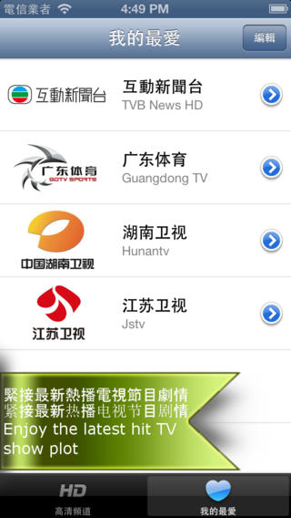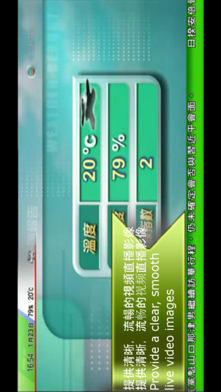千万不要错过,一个优质的高清直播电视方案~ 【重点精彩同步直播内容】 - 各大电视台新年节目同步直播! - 英格兰超级足球联赛同步直播! - 中国中央电视台同步直播! -提供多达60 个以上的中国及香港地区高清直播电视节目 -高速同步实时播放,紧接最新热播电视节目剧情 -提供清晰,流畅的视频直播影像 -最好用及最方便的高清直播电视方案 -简洁介面,轻易掌握 -可以在 3G 网络或 WiFi(WLAN)观看 -可以自定义喜爱频道功能 -支持高清屏幕 -支持 iPhone 5 -支持 iPad -支持 AirPlay -更多新的直播电视节目地区正在增加中(例如:台湾,韩国,日本,美国等) 提供多达60 个以上的中国及香港地区高清直播电视节目: 高清翡翠台 互动新闻台 深圳卫视 深圳体育 深圳少儿 深圳公共 深圳都市 深圳电视剧 深圳财经 广东珠江 广东公共 广东新闻 广东移动 广东体育 广东会展 广东房产 广州电视 广州少儿 广州经济 广州影视 广州竞赛 广州新闻 CCTV 高清 CCTV-1 综合 CCTV-2 财经 CCTV-3 综艺 CCTV-4-亚洲 CCTV-4-欧洲 CCTV-4-美州 CCTV-5 体育 CCTV-6 电影 CCTV-7 军事农业 CCTV-8 电视剧 CCTV-9 记录 CCTV-10 科教 CCTV-11 战曲 CCTV-12 社会与法 CCTV-13 新闻 CCTV-14 少儿 CCTV-15 音乐 CCTV-News 英语新闻 CCTV-高尔夫网球 CCTV-风云足球 CCTV-电视指南 湖南卫视 湖北卫视 浙江卫视 江苏卫视 东方卫视 第一财经 东方财经 上海星尚 炫动卡通 上视纪实 上海外语 北京卫视 旅游卫视 天津卫视 辽宁卫视 四川卫视 重庆卫视 吉林卫视 山东卫视 贵州卫视 兵团卫视 广西卫视 河南卫视 安徽卫视 黑龙江卫视 厦门卫视 河北卫视 江西卫视 内蒙古卫视 山西卫视 云南卫视 青海卫视 支持 3 种语言介面 英文,繁体中文,简体中文 更多优点,不能尽录! 不需犹豫?立即下载! 【温馨提示】 -为节省您的流量费用,建议您使用WiFi网络收看 -如果使用时遇上技术困难, 请发电邮至 sinowayint@gmail.com 查询 -电视节目的版权归各电视台所有,如有侵犯版权问题,请发电邮至sinowayint@gmail.com 联系