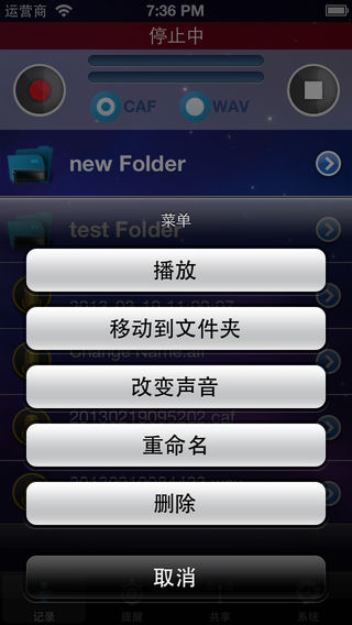 这是一个专业录音工具 功能齐全,功能强大 这是您录音的首选软件 下面,为大家介绍一下它的功能 *录音格式可以选择CAF和WAV *可以设置备忘录提醒 *强大的变声功能 *可以通过WIFI方便的将录音文件同步到电脑 *支持iCloud自动备份 *采用先进的数据存储方式,可存放海量录音文件 *可用文件夹分类录音,方便管理 软件界面友好,美观,操作非常简单 希望我们的产品能够对您有所帮助 您的支持将是我们最大的动力 如果对我们的产品有任何建议欢迎随时提出