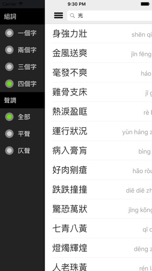 『押韵』是一款韵文词典,用于查找韵母相同或相近的字或词。为进行诗歌、词牌、对联、歌词、广告文案等文学创作的遣词用韵提供帮助。借助这一工具,可以拓展想象,发散思维,使您的写作富于韵律之美。 本词典总共收录了近9000常用单字,44000常用词和成语。同时支持简体与繁体中文。 功能特点: * 根据单字查找押韵的单字,例如「光」与「床」、「窗」、「霜」等押韵; * 根据单字查找押韵的词,例如「龙」与「马桶」、「临时工」、「大闹天宫」等押韵; * 根据词语查找押韵的词,例如「曹操」与「药膏」、「烧烤」等押韵; * 可以按照平声与仄声不同声调区分查找结果; * 查找单字时可以按照不同字数查找押韵的词…