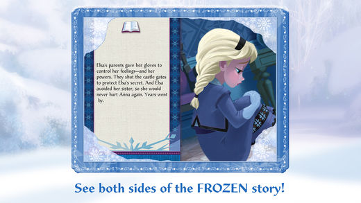 **Now featuring the Frozen Fever story, the next chapter in the story of FROZEN! Reunite with your friends from Arendelle and experience the story of this hilarious, all-new short!** **Winner of the Editor's Choice Award, Children's Technology Review** • Experience two sides of the new Frozen film story with Anna and Elsa – two sisters with very different points of view! • Interactive play: create your own “ice craft” snow globes, and re-create Frozen scenes with frosty drawing tools. • Flip your device to read, hear, and see the different perspectives from Anna and Elsa. •Laugh out loud as your enjoy tappable animation, film quotes, and a few surprises. In “Frozen,” fearless optimist Anna teams up with rugged mountain man Kristoff and his loyal reindeer Sven in an epic journey, encouraging Everest-like conditions, mystical trolls and a hilarious snowman named Olaf in a race to find Anna’s sister, Elsa, whose icy powers have trapped the kingdom of Arendelle in eternal winter. Features: • Storytelling Options: Read on your own! Record your own voice! Or listen to the narration that accompanies this retelling of Frozen • Create and build frozen scenes and crystal palaces with your “ice craft” tools • Flip your device upside-down for different points of view from the two sisters • Short clips from the actual film • Activities, including: put together ice puzzles • Surprising and fun tappable activities Before you download this experience, please consider that this app contains advertising for The Walt Disney Family of Companies. If you’re experiencing difficulties with audio, please check the audio settings with your device to see if your device is muted. For assistance, please visit our customer care FAQ page here: http://help.disney.com/en_US/Apps/Frozen-Storybook-Deluxe. Privacy Policy – http://disneyprivacycenter.com Terms of Use – http://disneytermsofuse.com