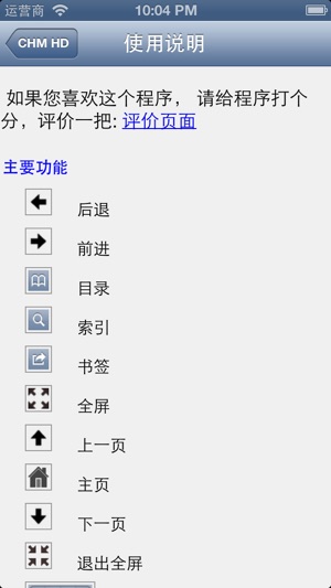 CHM HD 是一个简单易用, 功能齐全的CHM阅读器, 支持iPad, iPhone, iPod touch. 此 App 已针对 iPhone 5 进行优化。 支持多种文件格式: - .mp4, .mov, .mp3; - .jpg, .tiff, .png, .gif (images); - .doc and .docx (Microsoft Word); .htm .html and .webarchive (web pages); .key (Keynote); .numbers (Numbers); .pages (Pages); .pdf (Preview and Ad…