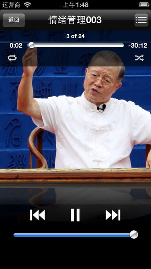====【曾仕强-情绪管理·有声经典】==== 《曾仕强-情绪管理·有声经典》全集,限价6元,同时支持iphone和ipad。 支持后台播放。 支持定时播放。 增加记忆功能,可以继续收听上次关闭时的记录。 =====内容介绍===== 你不要讨好任何人,更不要得罪任何一个人,你得罪不起的! 自律,自己管自己,不要让别人管你,你就没有压力,就容易改进自己。 把应该、必须,升高到一定程度,你就痛苦不堪。 聪明的小孩是很难教的,你教会了他,他就很难孝顺你。 千金难买回头一望。回头看一看,我这样做了,会怎么样?稍微缓一下并不耽误什么事,不要急。 人是习惯的动物,人生活在一连串的习惯当中。改变我们的习惯…