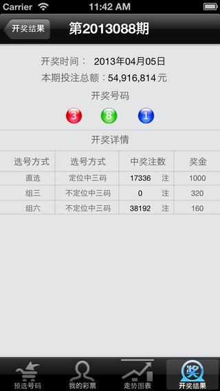 福彩3D专家是一款方便彩民选号的辅助工具,能为彩民提供最新的开奖结果与信息,福彩3D专家具有多种走势曲线图表,彩民可根据开奖历史走势设置缩水条件及预选注数,便可轻松生成的预选号码,从而达到降低投注风险,提高命中率的目的。 主要特点: (1)用户可第一时间查看最新的开奖结果和开奖信息。 (2)操作简单,只需几步就能完成选号。 (3)为用户提供和值,大小,奇偶,跨度,质合等常用曲线走势图表。 (4)用户的选择空间大,可自行设置缩水条件及目标注数。 (5)每次数据更新网络流量控制在30k之内。 (6)简单实用的选号编辑与保存功能,方便用户查询和比对历史选号。