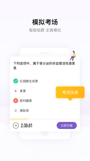 「丁香医考」汇集多种医学考试历年真题和权威解析,随时随地,手机刷题,复习冲刺,事半功倍。 由国内医学专业网站丁香园团队研发,针对执考、考研等医学考试,旨在为诸位考生提供随身携带的复习工具,帮助考生高效提升考试分数。 功能介绍: 1.海量真题,尽收囊中: 囊括海量真题,模拟综合笔试,让你随时随地感受考试氛围,积累实战经验。 2.巩固考点,量身定制:根据教材与指导用书,巩固考点精编解析,帮你知知其所以然。 新题挑战,错题复习,全都安排妥妥的。 3.按需答题,各个击破:「模拟考试」,模拟真实笔试,即时计算分数;「分类练习」,针对各个学科集中练习,短时间各个击破。 4.答题统计,成就奖励: 能力分…