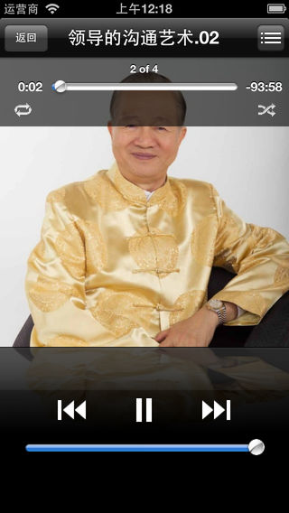 ====【曾仕强-领导的沟通艺术-有声经典】==== 《曾仕强-领导的沟通艺术-有声经典》全集,限价6元,同时支持iphone和ipad。 支持后台播放。 支持定时播放。 增加记忆功能,可以继续收听上次关闭时的记录。 ====【内容介绍】==== 第一集 沟通的最佳态度 用心听他说什么;不计较他怎么说,如果做到万事OK。 理论上大家应该保持理性,一切依照道理, 实际上大家相当不理性,情绪不容易稳定。 先做好情绪管理,再进行沟通。 不能欺骗,也不能说心里话,要说妥当话。 第二集 沟通前的心理准备 两难:1.先说先死--站在亮处,透明化对自己不利 2.不说也死--令人怀疑,不把自己当作对手 合理:3.说到不死--合理表达,说到和没有说一样 第三集 沟通的四大目的 1.说明事物--陈述事实→引起思考→影响见解 2.表达情感--表示观感→流露感情→产生感应 3.建立问候--暗示情分→友善(不友善)→建立问候 4.进行企图--透过问候→说明(暗示)→达成目标 第四集 沟通的三大原则 1. 我告诉你,你不要告诉别人。 2.要告诉别人,不要说我说的。 3.如果说我说的,我就说没说。 沟通的法则: 1、我告诉你,你不要告诉别人。 2、要告诉别人,不要说我说的。... 沟通的三种层次: 1、少说、多看、多听。 2、把问题弄清楚,抓住要点再开口。... 第五集 沟通的流动方向 1.上行--陈述意见、抱怨、批评--下情上达 2.下行--传达政策、目标、计划--上情下达 3.平行--互相了解、关怀、协调--心意相通 下对上:除非上司想听,否则不要说,说了也没用... 上对下:多说小话,少说大话,不能打官腔... 平 行:彼此尊重,从自己先做起,不要占便宜... 第六集 沟通的艺术 1.了解对方的言默之道 2.记住交浅不可以言深 3.以情为先求通情达理 4.言必有误不流于空谈 5.言之成理不自相矛盾 6.从容不迫不紧张急躁 言默之道:应该说才说,不该说要默,有言有默才好... 交浅不言深:寒暄话,华而不实,虚而不用,说了等于没说...
