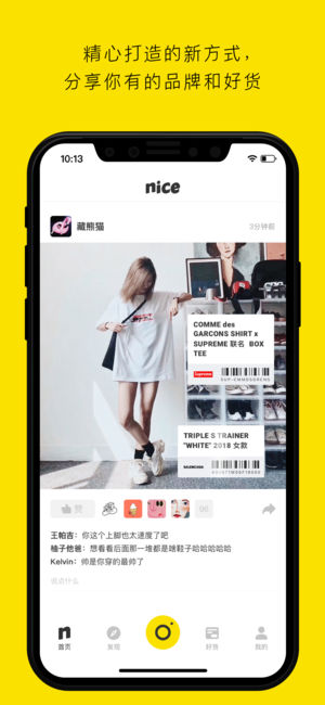潮流icon们的共同选择的app。 nice是一个围绕球鞋、潮流与时尚生活构建的社区。与数万名潮流达人一起,分享和发现从经典到近期热门的流行风格与好货。并且能够在nice上交易这些商品。 我们提供这些功能与服务: 球鞋以及潮牌交易 -专业鉴定,交易有保障 -交易价格透明,实时了解商品价格走势 -【预售】热门款式抢先买 -【出价求购】用理想的价格买到心仪的球鞋或者潮牌 超频以及潮牌资产管理 -看看这些你买过的球鞋和潮品现在值多少钱,参与全国排名 -了解你的球鞋和潮品价格涨跌情况 分享品牌与好货 - 通过nice精心打造的新方式,分享你有的品牌和好货 - 与你兴趣相投的nicer们交流风…