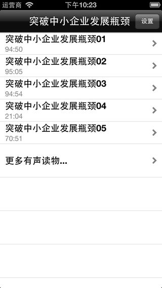 ====【余世维-突破中小企业发展瓶颈】==== 《余世维-突破中小企业发展瓶颈》全集,同时支持iphone和iphone5。 支持定时播放。 支持后台播放。 增加记忆功能,可以继续收听上次关闭时的记录。 ====【内容介绍】==== 中小企业的激情和蓬勃的生命力使其成为市场中的“快鱼”。然而,有关调查表明:中国中小企业的平均寿命由以前的5.7年缩短到2.4年。 那么,我国中小企业的寿命为何越来越短?中小企业又如何才能突破成长中遭遇的发展瓶颈呢?怎样才能确保自己企业的发展速度总是快于竞争对手呢? 余世维博士在这几年走遍大江南北,进行过上千场培训并接触了数万家企业,直面了无数学员提出的企业发展中的种种困惑。余博士通过3年时间的努力,结合自身30年的跨国企业管理实战经验以及对中国企业超过10年以上的研究心得,隆重推出了这本极具幽默的经典力作。 本应用重点阐述了中小企业在发展过程中常见的16个问题以及相应对策,不愧为企业规避风险、稳步发展的良方妙药。